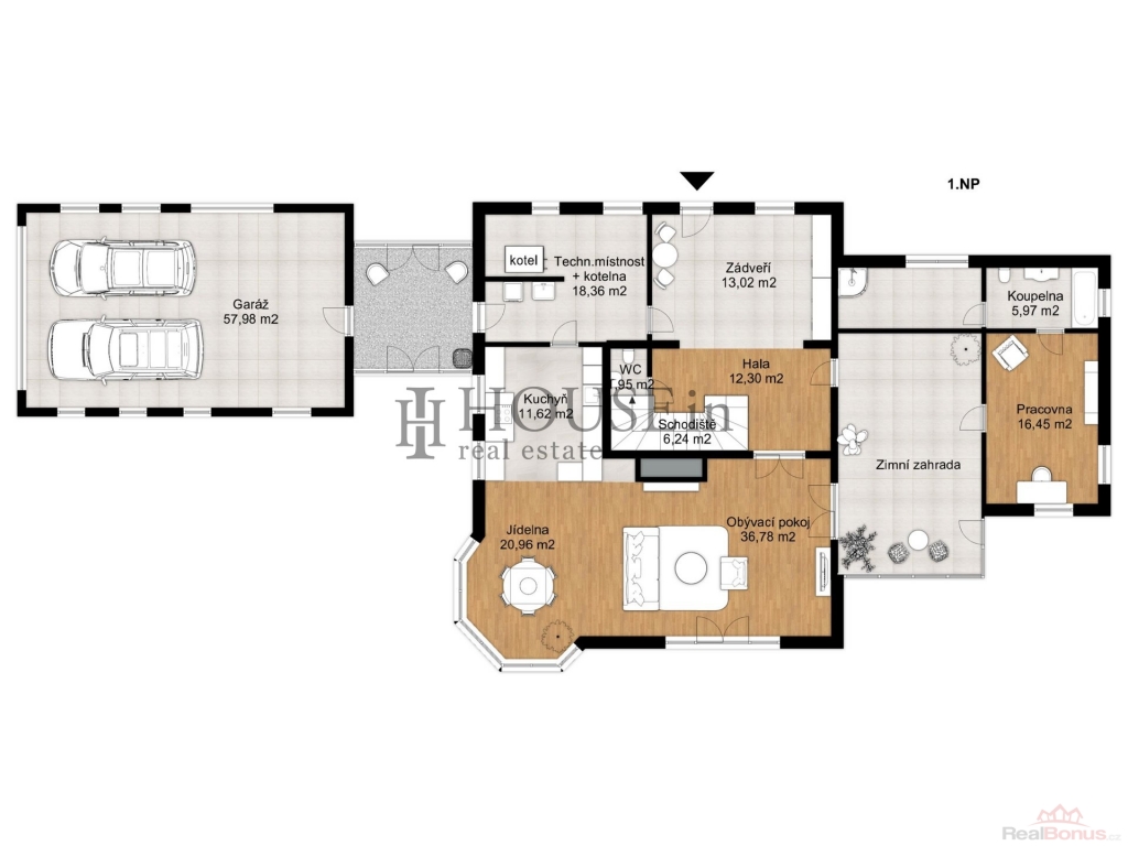 ? Obytná plocha: celkem 277 m2 ve dvou nadzemních podlažích