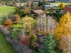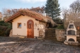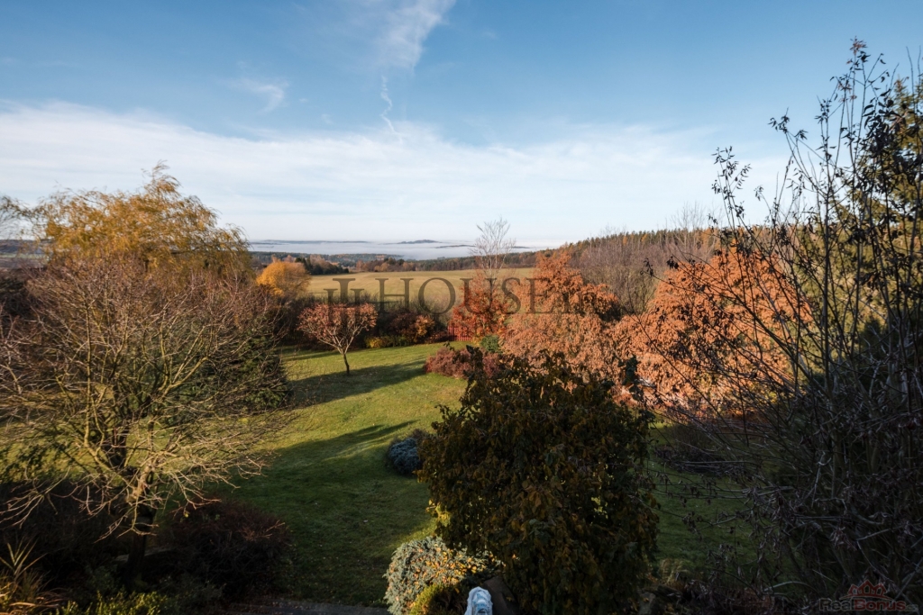 Zahrada je vkusně upravená s vzrostlými thuji, jedlemi, smrky, borovicemi, stříbrným smrkem, modřínem, břízami, keři (bokovišně, ambroň) a užitkovými stromy (ořech, mirabelky, jabloň, slivoň). Na pozemku se nachází fóliové jezírko s hloubkou 2 m napájené z vrtané studny hl. 38 m ? voda ze studny zároveň slouží pro závlahový systém trávníku a rostlin. Do jezírka vtéká potůček přes malý vodopád, který přidává zahradě příjemný zvukový efekt a pocit soukromé oázy. U jezírka stojí dřevěný altán s podlahou protaženou nad vodní hladinu ? ideální místo pro posezení, relaxaci nebo večerní atmosféru u vody. Další altán je umístěn v jiné části zahrady pro variabilní využití. Terasa u domu je z pískovce, což podtrhuje přírodní charakter zahrady a navazuje na použití přírodního kamene na dvoře. Trávník je udržován traktůrkem a sekačkou značky Castel Garden a Husqvarna Rider.