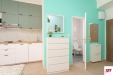 Plně zařízený obytný prostor se sklopným lůžkem (140×200 cm), šatní skříní, komodou, pracovním stolem se židlí, botníkem, zrcadlem a kompletní sadou ložního prádla (povlečení, polštář, přikrývka) a další drobné vybavení