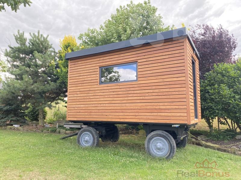 Prodám nově postavenou maringotku o rozměrech 4,65 x 2,15 metru, která je ideální jako mobilní chata, tiny house nebo útulné víkendové bydlení. Maringotka je kompletně zateplená - stěny, strop i podlaha, takže nabízí příjemné klima po celý rok. Vnější opláštění tvoří modřínová palubka ošetřená kvalitní olejovou lazurou OSMO, střecha je oplechovaná hliníkem pro maximální odolnost a dlouhou životnost.