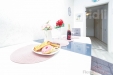 Vyvýšený obývací pokoj s kuchyňským koutem orientovaným na jižní stranu, kde místnost je po celý den krásně prosvětlená, s přímým vstupem na 25m2 terasu, která rozšiřuje obytný prostor o další příjemnou venkovní zónu. Terasa navíc sousedí pouze se stezkou pro pěší.