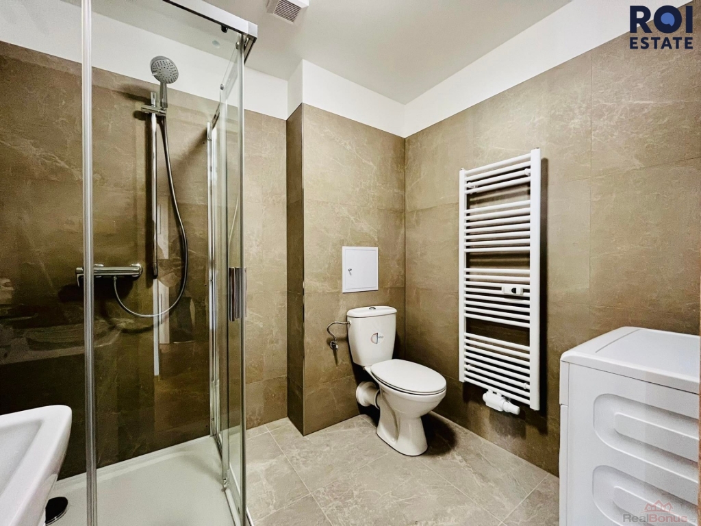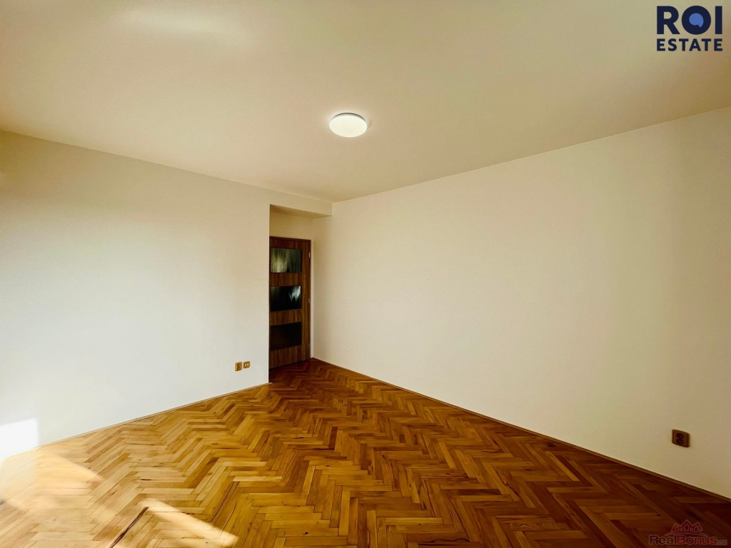 Byt nás přivítá prostornou chodbou, do které můžete dle Vaší fantazie dát skříně, kam padnou jako ulité. Odsud se dostaneme do kuchyně s obývacím pokojem, který díky spojení s kuchyní vytváří opravdu velký obytný prostor. Kuchyňská linka je Vám plně k dispozici včetně spotřebičů jako je plynový sporák a lednice. Pracovní plocha a úložný prostor je samozřejmostí. Díky umístění nemovitosti je v celém bytě velmi příjemně. Z obývacího prostoru se také dostaneme do dvou neprůchozích pokojů, jejichž orientace zajišťuje v celé bytové jednotce klid. Celý byt se nabízí jako nevybavený, tudíž si veškeré věci můžete zařídit dle Vaší chuti a představ. Naší poslední zastávkou z chodby je koupelna spojená s toaletou, kde na Vás čeká pračka, která se postará o Vaše oblečení. Celý byt působí velmi vzdušně a světle.