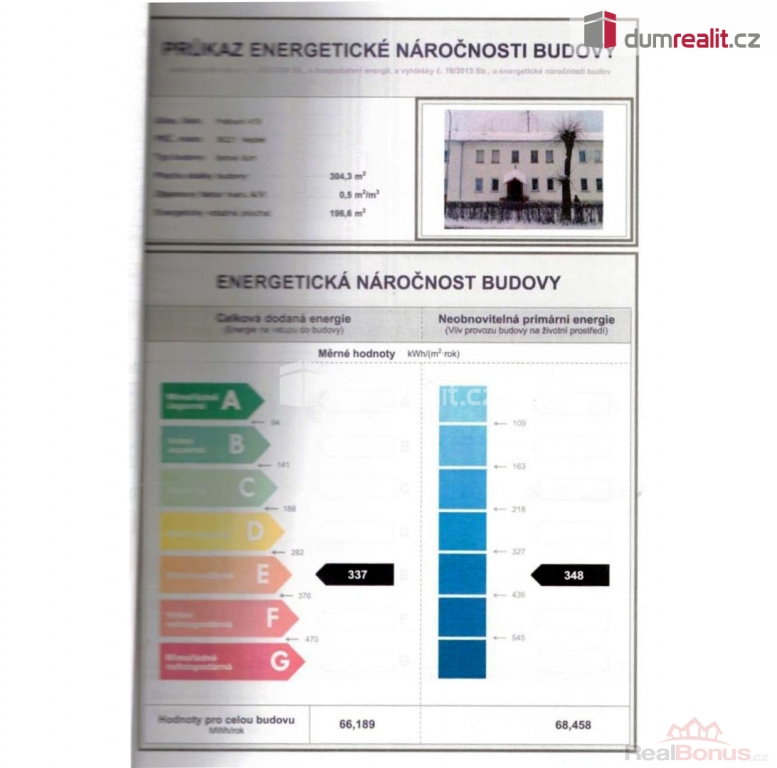 Dle platné legislativy je pro dům zpracován PENB, kdy stavba je zařazena do energetické třídy E úsporná. Cena je včetně právního servisu. Tuto nemovitost lze hradit hypotečním úvěrem, který Vám rádi pomůžeme vyřídit v našem hypotečním centru. Ev. číslo: 653121. Energetický štítek: E