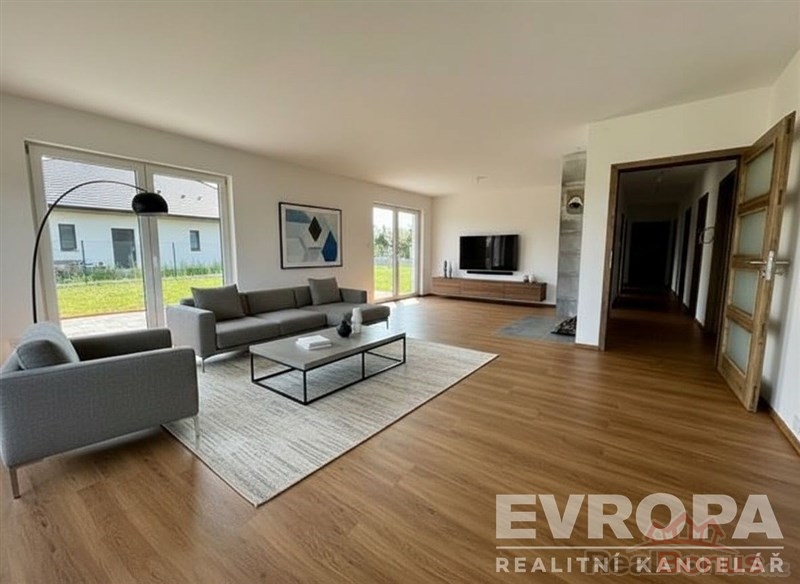 Nabízíme prodej rodinného domu o zastavěné ploše 145m2 s dispozicí 4kk na pozemku 1061m2 v nové zástavbě obce Přehýšov. Dřevostavba je napojena na obecní vodovod a elektřinu, odpady řešeny pomocí ČOV. Plyn je na hranici pozemku, ale není zaveden do domu.