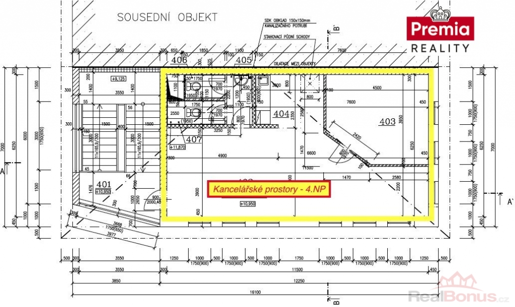 Velmi podobný prostor za stejných cenových podmínek se nachází také ve 2. patře této budovy.