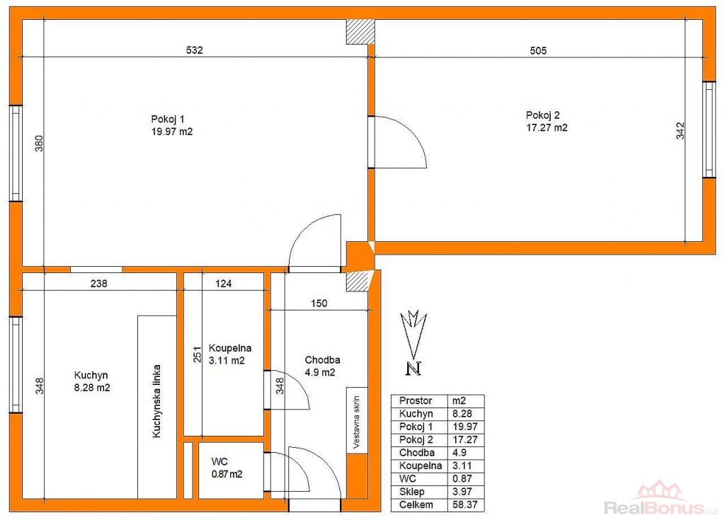 | Dispozice bytu | 2+1 |