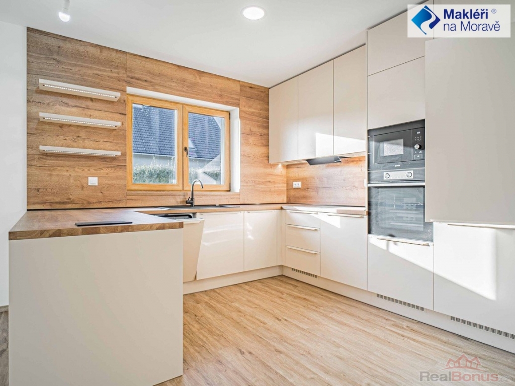 Vybavení kuchyně je v nadstandardním provedení s komfortní prostornou rohovou kuch. linkou a s ostrůvkem se spoustou úložného prostoru. Spotřebiče zn. Gorenje jsou rovněž zárukou kvality.