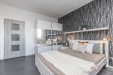 Dispozice sestává ze tří samostatných ložnic, obývacího pokoje (bez sedací soupravy), kuchyně s jídelním koutem, vstupní haly, která disponuje místem pro množství skříní, koupelny s vanou a místem pro pračku a sušičku, samostatné toalety a komory v bytě. Jako příslušenství slouží lodžie.