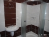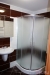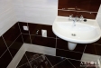 Koupelna se sprchovým koutem, WC a přípojkou na pračku, topným žebříkem a toaletní zrcadlovou skříňkou.
