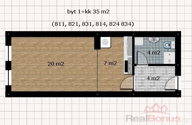 | Dispozice bytu | 1+kk |