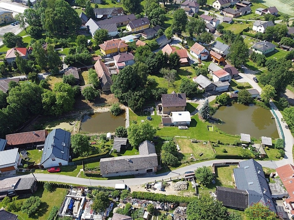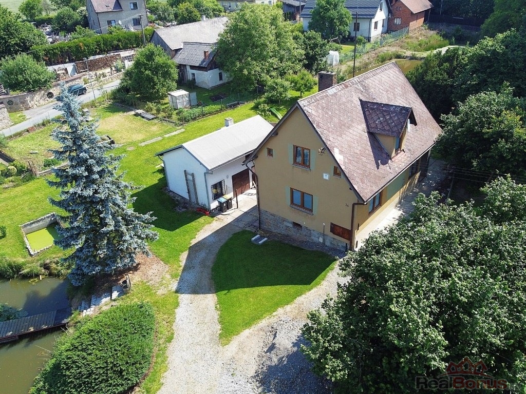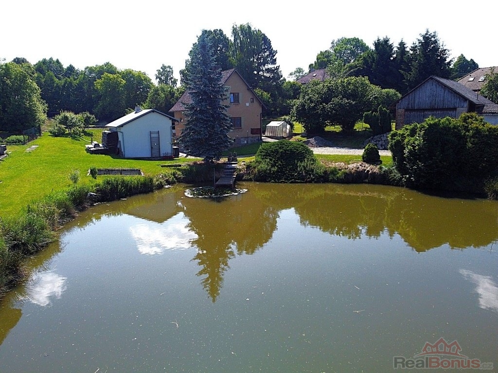 Dům je celopodsklepený a částečně zrekonstruovaný. V přízemí domu je prostorná předsíň, kuchyň spojená s obývacím pokojem, koupelna se sprchovým koutem, samostatné WC, komora. V patře jsou tři pokoje, koupelna s podlahovým topením a WC, lodžie. Ve sklepě domu je společenská místnost pro posezení vybavená kamny, menší kuchyňskou linkou s dřezem, WC, sprchový kout a větší technická místnost, kterou lze využít k uskladnění sezónních věcí. Vedle domu je samostatně stojící budova s garáží a prostory pro malé hospodářství. Dům stojí na pozemku o celkové výměře 4193m2 se třemi kaskádovitě vybudovanými rybníky.