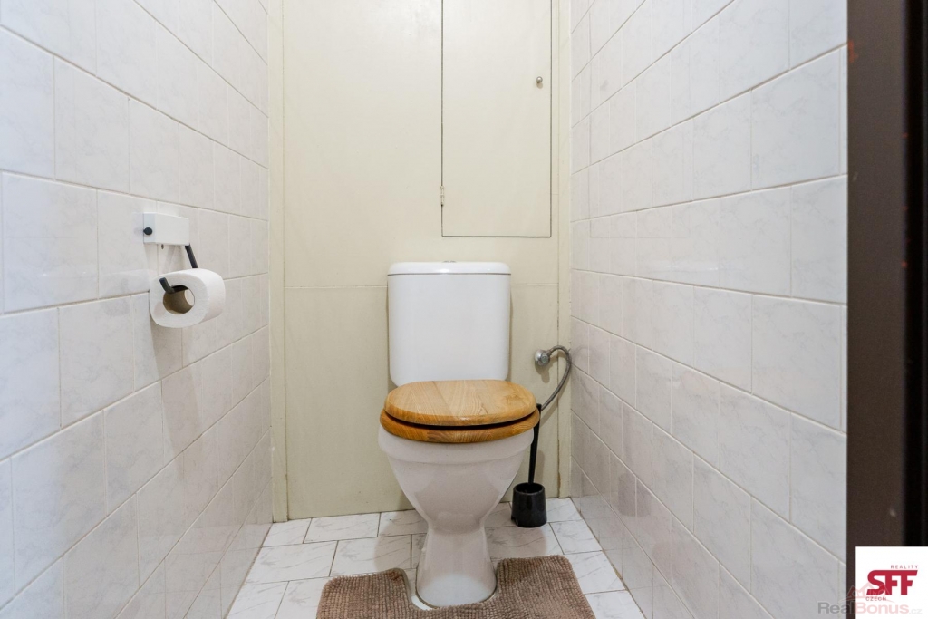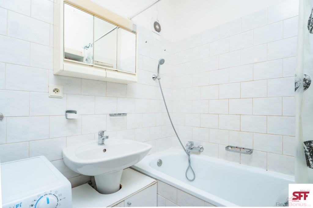 K dispozici je koupelna s vanou, umyvadlem a pračkou, samostatné WC a úložná komora. Úklid společných prostor (kuchyně, koupelna, WC) je zajištěn 2x měsíčně a je zahrnut v ceně nájmu.