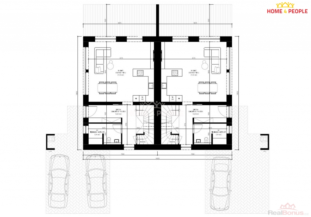 (Cena včetně pozemku, projektu, stavebního povolení, výstavby domu na klíč, kolaudace a parkování. DP)