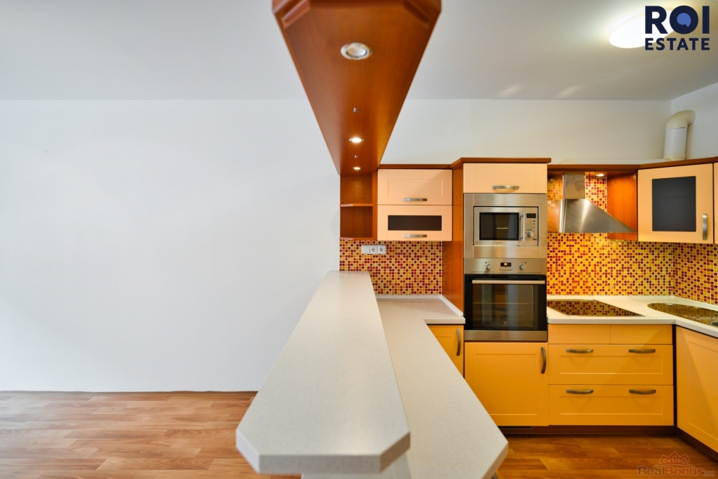 ? Kuchyňská linka je plně vybavená: vestavěná trouba, mikrovlnná trouba, varná deska, digestoř, myčka, dostatek úložných prostor