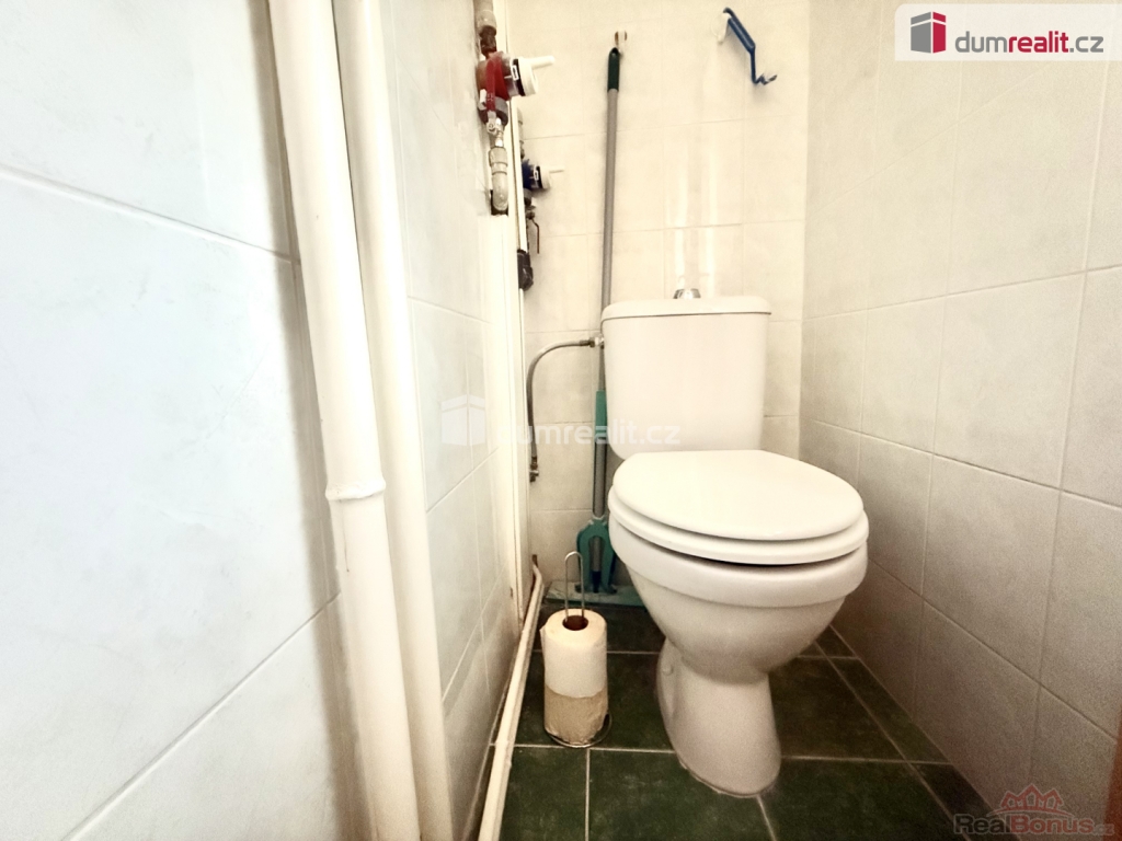 Koupelna je vybavena sprchovým koutem a toaleta je řešena samostatně. Velkou výhodou tohoto bytu jsou dva velké a prostorné sklepy, které poskytují dostatek prostoru pro úložné věci.