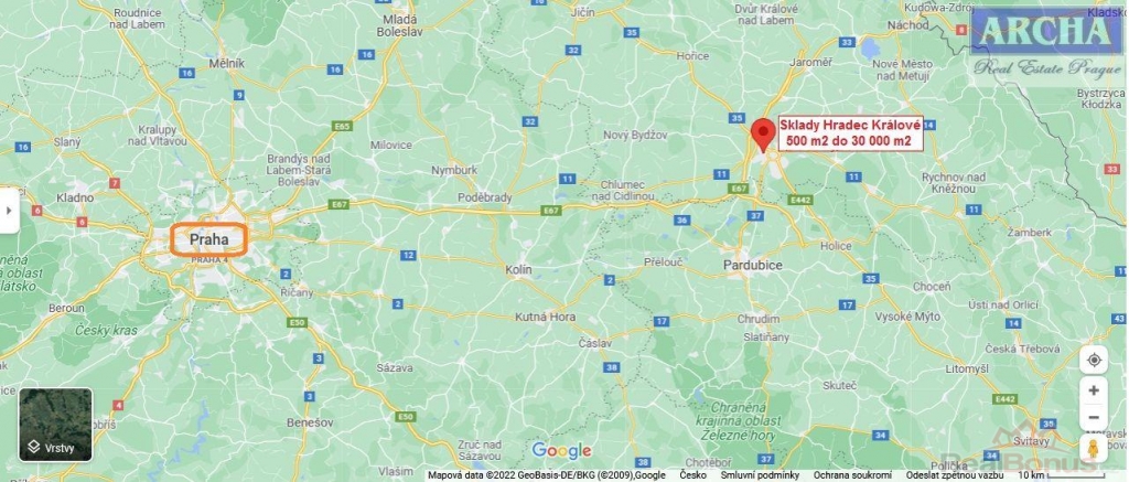 Průmyslová hala se nachází na Pražském předměstí s výbornou dostupností z Dálnice D11 na Prahu.