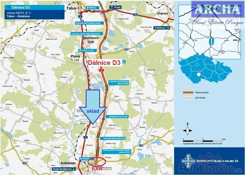 Nabízíme k nájmu moderní sklad s kancelářemi, nedaleko Exitu Soběslav nové dálnice D3 (Praha - Tábor - České Budějovice - Rakousko)