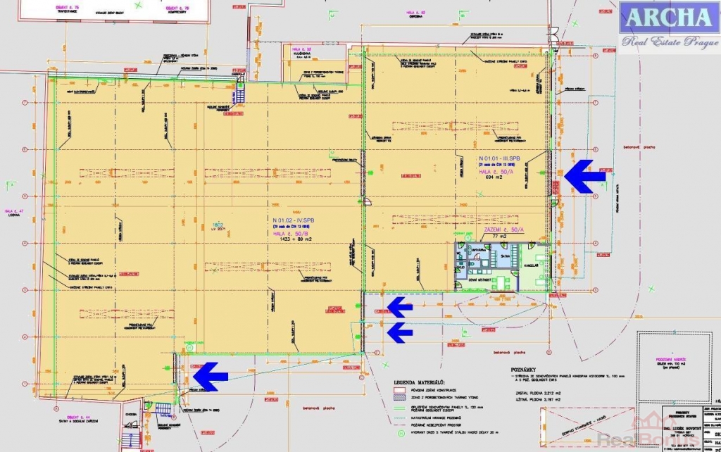Nabízíme k pronájmu přízemní výrobně/skladovací prostory o rozloze 2.197 metrů s kancelářskou vestavbou včetně sociálního zázemí a šaten.