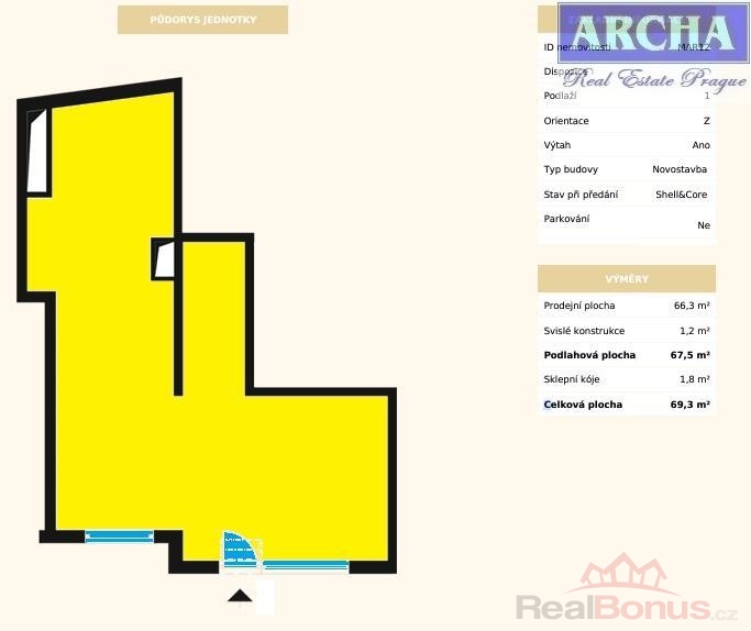 Nová Obchodní jednotka má ce plochu 34,4 m2 a nachází se v přízemí novostavby bytové rezidence na Praha 4 Nusle.