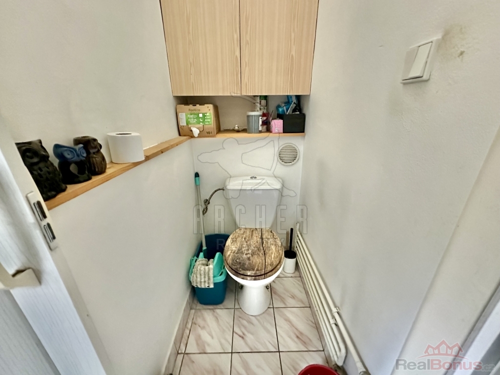Samostatná koupelna a WC zajišťují pohodlí, podkroví pak nabízí další úložný nebo rozšiřující prostor.