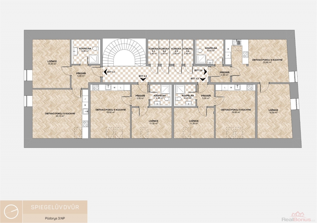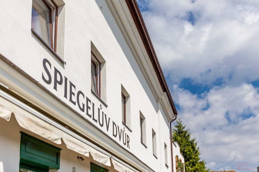 Bytová jednotka se nachází v 3.NP historického objektu v centru města. Spiegelův dvůr tvoří soubor staveb procházející obnovou. Bytová jednotka se nachází v čelní budově, kde je v přízemí tradiční česká restaurace. Dvůr je pojmenován po rodině podnikatele Spiegela, jehož pravnučkou byla Madeleine Albrightová.
