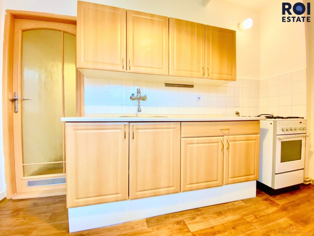 Kuchyně je vybavena kuchyňskou linkou, plynovým sporákem a troubou, velkou lednicí s mrazákem a mikrovlnnou troubou. Dva obytné pokoje jsou orientovány - jeden do klidné ulice a druhý, s balkonem, má krásný výhled do zeleně.