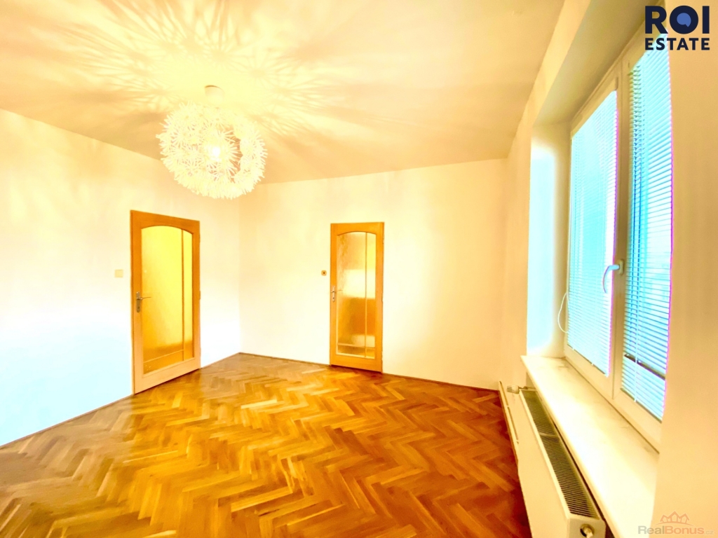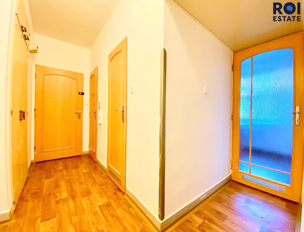 Z prostorné chodby s vestavěnými skříněmi se dostanete do kuchyně, dvou prostorných neprůchozích pokojů, koupelny, samostatného WC a komory.