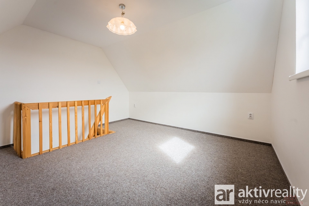 Domek nabízí útulné bydlení v klidné části obce. Přízemí je tvořeno jedním pokojem s částečně vybavenou kuchyňskou linkou. V levé části domu se nachází koupelna se sprchovým koutem, umyvadlem a toaletou. Po dřevěných schodech vystoupíme do podkroví, které nabízí pokoj s výhledem do přírody. Domek je celý podsklepen a tím je zde dostatek úložného prostoru pro uskladnění sezónních věcí. Suterén slouží jako technická místnost včetně přípojky na pračku. Obytný prostor je vybaven klimatizační jednotkou umístěnou v přízemí, díky které lze udržovat příjemnou teplotu v bytě po celý rok.
