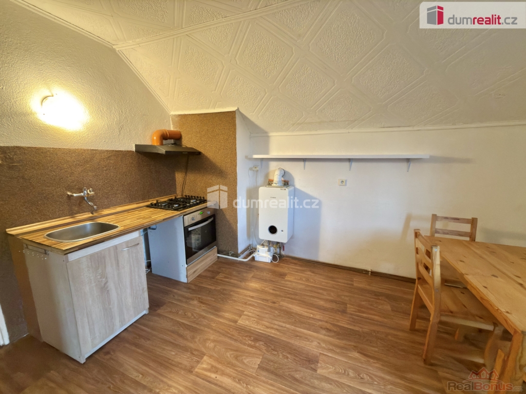 Jsou zde 3 pokoje, kuchyň, koupelna s Wc, jsou i k dispozici další úložné prostory k bytu, v mezipatře velký kumbál, prostorový na půdě a ve sklepě, taky lze využívat za domem kůlnu.