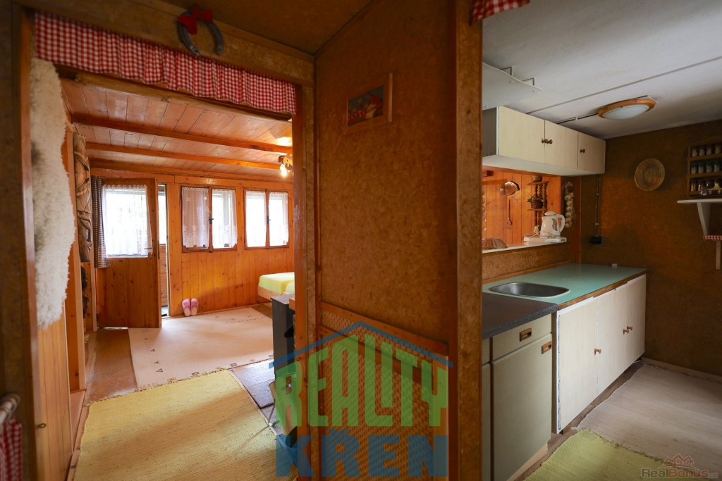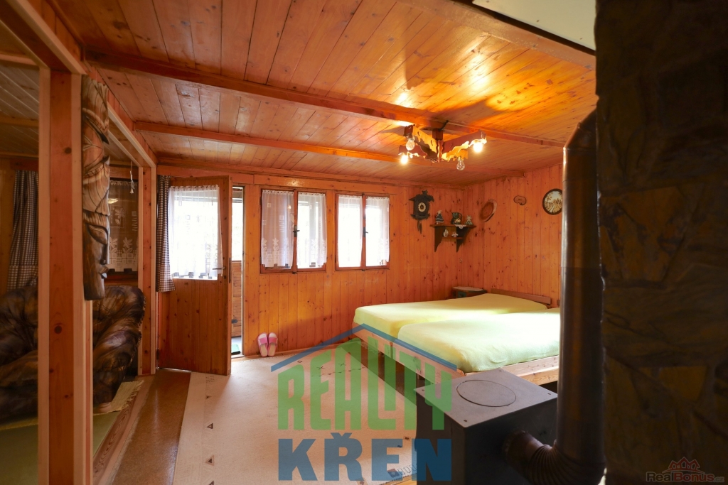Chata se nachází na pozemku o výměře 400 m2 se vzrostlými stromy, venkovním posezením a parkovacím stáním