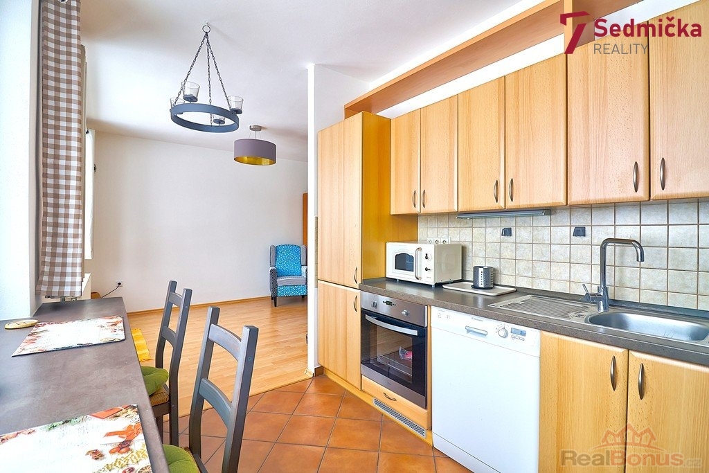 Právě pro Vás máme krásný byt 2+KK s vlastním parkovacím místem, v bytovém domě s oplocenou zahradou ve Vlachovicích, vhodný jak trvalému bydlení, tak k rekreačnímu využití. Byt je umístěný v 1. NP zrekonstruovaného bytového domu na okraji obce a je složen ze dvou pokojů, kuchyňského koutu, koupelny, samostatného WC a chodby. K bytu s vlastním vytápěním plynovým kotlem patří prostorný sklep s regály v suterénu domu. Mimo to má byt ve sklepních prostorách zabudované držáky pro kola, stojany na lyže a možnost používání všech společných prostor v suterénu domu.