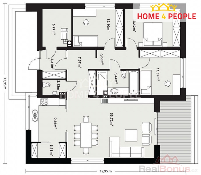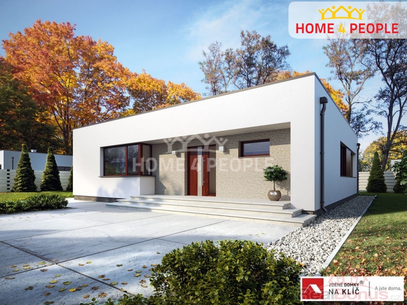 Cena včetně domu na klíč, sítí, přístupové komunikace, pozemku a DPH., Zprostředkujeme Vám výstavbu domu na klíč typ Viola 4+kk, 120 m na pozemku (č. 2) o velikosti 1056 m v Bořenovicích okr. Kroměříž. Bungalov VIOLA je zajímavý design moderního domu, který si zaslouží pozornost jak z hlediska funkčnosti, tak z hlediska estetiky. Prostorný obývací prostor s velkým zasklením, skládající se z obývacího pokoje a jídelny, plynule spojuje interiér domu s venkovní terasou. Velká kuchyň má také spíž. V samostatné noční části jsou tři ložnice a koupelna. Výhodou tohoto projektu je také velká technická místnost, kde se vybízí rovnou umístit pračku a sušičku. VIOLA je jednoduchý jednopatrový dům, který splňuje potřeby čtyřčlenné rodiny. Jednoduchý tvar budovy získal moderní charakter díky pozoruhodnému stylu vnější úpravy v kombinaci s plochou střechou. Dům VIOLA díky své velké zastavěné ploše vybízí k projektovému přepracování na dispozici 4+kk+šatna nebo menší pracovna (dispozice 5+kk) a stále bude splňovat užitný komfort. Součásti uvedené ceny, která již zahrnuje DPH je dům na klíč, inženýrské sítě, příjezdová i obslužná komunikace, veřejné osvětlení, chodník, centrální čistička odpadních vod, pozemek a veškeré projektové práce a stavební povolení. Pozemek (číslo 2) je mírně svažitý na klidném místě obce. Šíře pozemku je 21 m. Dle územního plánu je pozemek veden a schválen pro rodinné bydlení a projekt byl schválen zastupitelstvem obce. Zastavěná plocha domu je 120 m s užitnou plochou 95 m. Jedná se o zděnou stavbu a nabízí se ve variantě na klíč. Topení je řešeno nízkonákladovým teplovodním podlahovým topením, tepelné čerpadlo se zásobníkem na teplou vodu 180l. Možnost změnit na jiný typ vytápění s doplatkem dle výběru. Uvedená cena domu obsahuje základovou desku, DPH a stavba bude provedena na klíč a předána po kolaudaci k okamžitému užívání. (Součástí ceny není kuchyňská linka a světla dokážeme za zvýhodněných podmínek zajistit přes naše dodavatele). Možnost změny stavebního materiálu na dřevostavbu s doplatkem nebo přistavit garáž přímo spojenou s domem. Délka výstavby od vydání stavebního 12 - 13 měsíců. Obec Bořenovice se nachází v okrese Kroměříž ve Zlínském kraji, zhruba 3,5 km od Holešova, 28 km od Kroměříže a 10 km k dálnici D55. Žije zde cca 210 obyvatel. Základní školu děti navštěvují v sousedním městě Holešov. V obci plné pokrytí signálu LTE, dostupný internet i satelitní vysílání. V obci je obchod se smíšeným zbožím, zajištěna autobusová doprava do Holešova. Omezený počet pozemků pro prodej v tomto roce. Pozemky a domu se dají různě kombinovat. Doporučuji prohlídku a to jak samotného pozemku, tak našich rozestavěných domů v okolí. Stavby prvních domů jsou zahájeny. ZTV Bořenovice doporučuji! Ev. číslo: 29337. Energetický štítek: A (35 kWh/m2/rok).