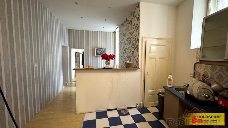 Nabízíme pronájem světlého a prostorného bytu 3+1 o ploše 103,9 m2 ve 3. patře historického domu na rohu Masarykovy ulice a Zelného trhu v centru Brna. Byt tvoří předsíň s chodbou, velká kuchyně s komorou, tři neprůchozí pokoje (dva orientované do Masarykovy ulice, jeden do dvora), koupelna s vanou a WC a samostatné druhé WC. K bytu náleží také malý balkon do dvora, který však není možné z bezpečnostních důvodů využívat.