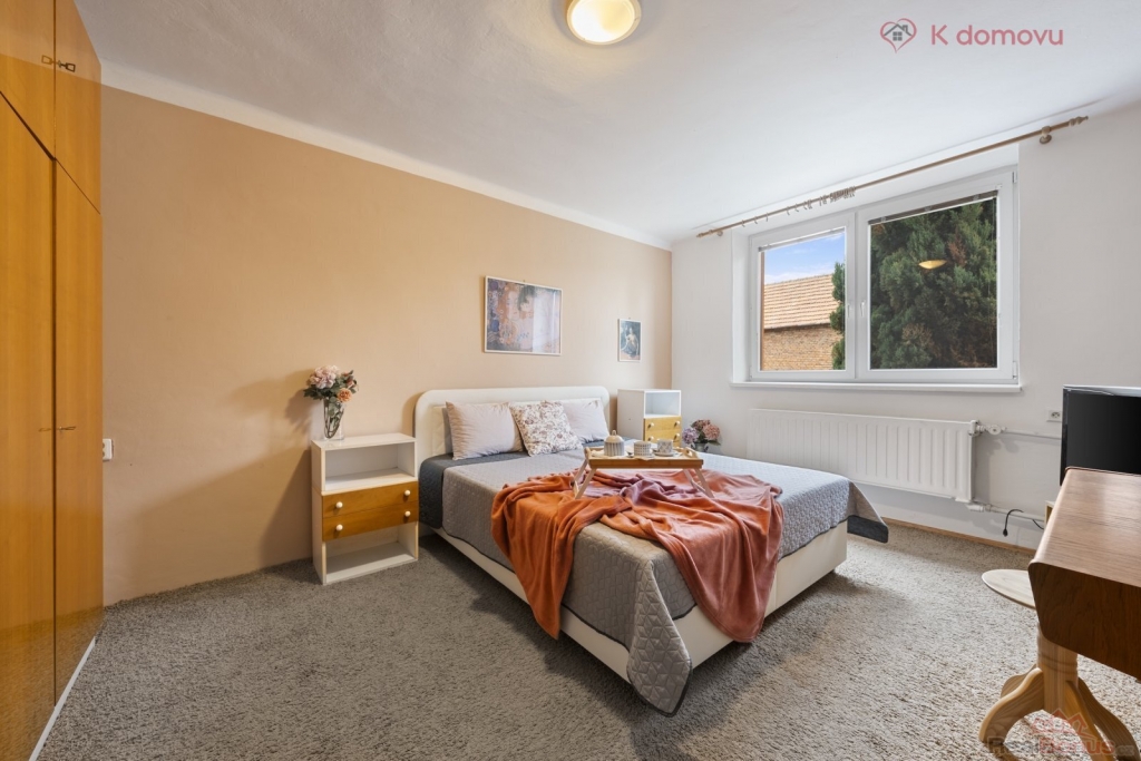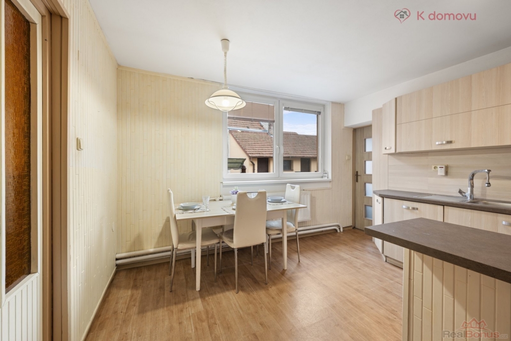 Nabízený RD je přízemní a sestává ze dvou bytových jednotek 1+1 (31m2) a 3+1 (117m2). Byty jsou odděleny průjezdem, který pak vede do vnitrobloku. Bonusem je i možnost zobytnění půdních prostor, které nabízejí další možnou obytnou plochu. Pro svou dispozici je dům vhodný pro rodiny hledající větší prostor nebo bydlení s výminkem, či využití bytu k pronájmu.