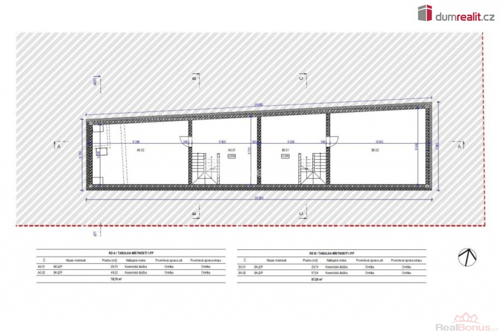 Cena uvedena včetně provize a právních služeb., Dumrealit.cz Vám zprostředkuje koupi rovinatého stavebního pozemku plochy 909m určeného pro výstavbu dvojdomu o užitné ploše 333,5m, se sklepními prostory 166,1m a střešními terasami plochy 102,2m. Pozemek je obdélníkového tvaru s plánovaným vjezdem z ulice Davídkova, Praha 8. Nachází se na kopci v místě, kde svah pozvolna přechází do roviny. Na výstavbu dvojdomu již bylo v roce 2025 vydáno územní rozhodnutí. Směrově je situován zejména na jih a sever. Dům "A" má užitnou plochu 159,0m, plus sklepní prostory 78,8m a střešní terasy 47,7m. Dům "B" má užitnou plochu 174,5m, plus sklepní prostory 87,3m a střešní terasy 54,5m. Jedná se vždy o dvě obytná nadzemní podlaží a střešní ateliér se dvěma terasami pro každý dům. V 1. NP se nachází hala, koupelna a obývací pokoj s kuchyňským koutem, dále garáž. Ve 2. NP se nachází tři ložnice a prostornější koupelna. Ve 3. NP se nachází střešní ateliér se vstupy na dvě terasy, z nichž bude krásný výhled na Prahu. V celé ploše půdorysu domu je podzemní podlaží s výškou stropu 2,55m se širokým potenciálem využití na kanceláře, skladové prostory, tělocvičnu, posilovnu, herny apod..