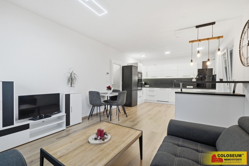 Ve výhradním zastoupení nabízíme moderní byt 2+kk o ploše 59,36 m2 (výměra dle prohlášení vlastníka), který je součástí novostavby z roku 2021 a nachází se ve 2. patře domu s výtahem. Byt je vybaven podlahovým vytápěním a jeho dispozice zahrnuje světlý obývací pokoj s kuchyňským koutem, ložnici, předsíň, koupelnu, samostatné WC a příjemnou lodžii.