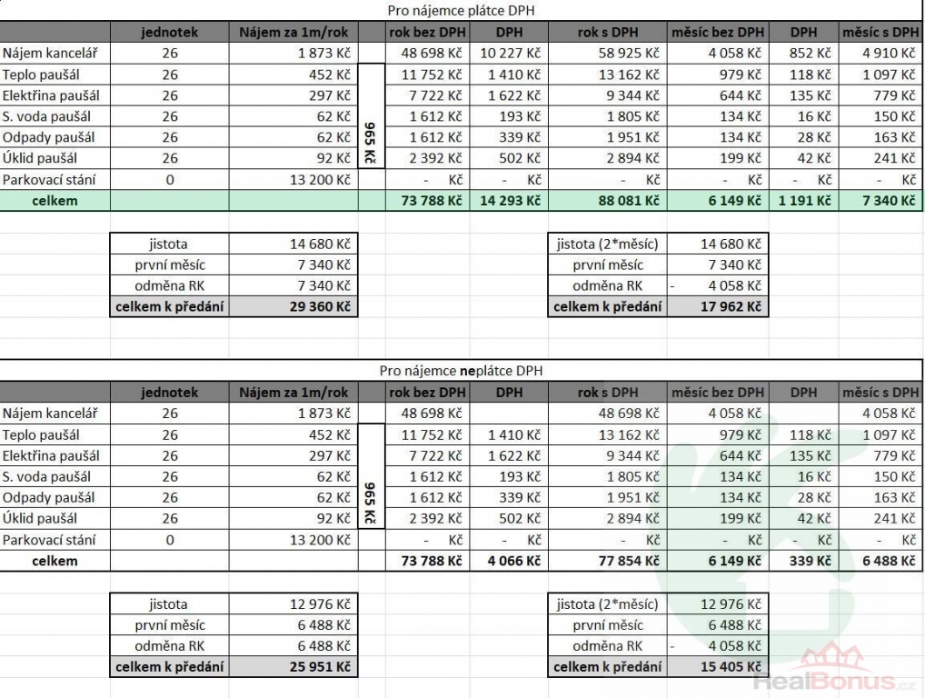 (cena bez služeb ve výši 965,- Kč/m2/rok)