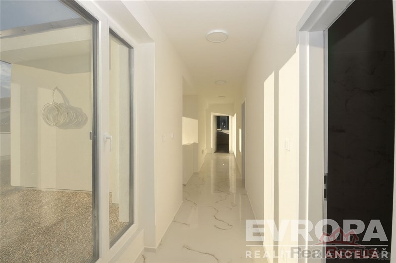 chodba a dva vstupy na terasu orientovanou na západní stranu