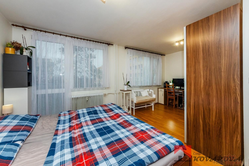 Kuchyň, obývací pokoj, ložnice, koupelna se sprchovým koutem a WC, šatna. K bytu náleží komora na chodbě a prostorný sklep. Velkou výhodou je prostorná lodžie, která nabízí příjemné posezení a možnost pozorovat krásné západy slunce. Součástí vybavení je také vestavěná skříň. Vytápění je ústřední dálkové. V bytě je k dispozici optické připojení k internetu. Parkování je bezproblémové v okolí domu. Dům je obklopen zelení a nachází se ve velmi žádané a klidné lokalitě.