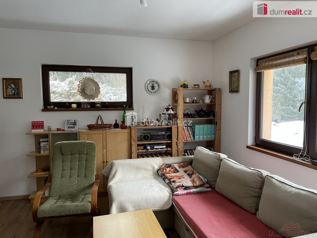 , Dumrealit.cz Vám zprostředkuje dlouhodobý pronájem chaty v části obce Vysoká Štola u Nejdku. Chata je v přírodě 3,9 km od centra Nejdku a 17 km od centra Karlových Varů. Součástí chaty je oplocený pozemek se zastřešeným venkovním posezením (altán), zahradní gril a venkovní nábytek. Parkování pro 4 vozidla je zajištěno před chatou. V blízkém okolí jsou lyžařské areály Pernink 11km, Plešivec 17km, Potůčky 21km a Boží Dar 24km. V Nejdku a Perninku začínají upravované běžecké trasy (Krušnohorská magistrála), v létě cyklotrasy. V obývacím pokoji je kuchyňská linka vybavená varnou deskou, lednicí s mrazákem, mikrovlnou troubou, rychlovarnou konvicí, myčkou nádobí, toustovačem, nádobím a příbory. Součástí obývacího pokoje jsou krbová kamna (zajišťují topení v objektu), rozkládací pohovka pro dvě osoby a posezení s výhledem do přírody. V ložnici jsou dvě postele s úložným prostorem a jedna postel rozkládací pro dvě osoby. V moderně zařízené koupelně je sprchový kout, umyvadlo a WC. V chatě jsou plovoucí podlahy a plastová okna. V prostorách chaty je zákaz kouření. El. energii a palivo do krbových kamen si zajistí nájemce u dodavatelů. Majitel požaduje, aby nájemník uzavřel pojistnou smlouvu na chatu. Měsíční nájemné činní 25.000,-Kč. Při podpisu nájemní smlouvy je požadována vratná kauce ve výši tří měsíčních nájmů a provize RK ve výši 25 000,-Kč. Vzhledem k tomu, že před zadáním do inzerce nebyl vyhotoven PENB, je tato nemovitost v souladu s platným zákonem zařazena do energetické třídy G. Ev. číslo: 649836. Energetický štítek: G