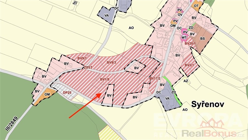 Jedná se o rovinatý a slunečný pozemek blízko lesa a přírody. Pozemek je v Územním plánu obce Syřenov určený k výstavbě rodinných domů s označením BV. Výtažky z Územního plánu jsou součástí inzerce mezi fotografiemi. Celé znění ÚP mohu zaslat na email.