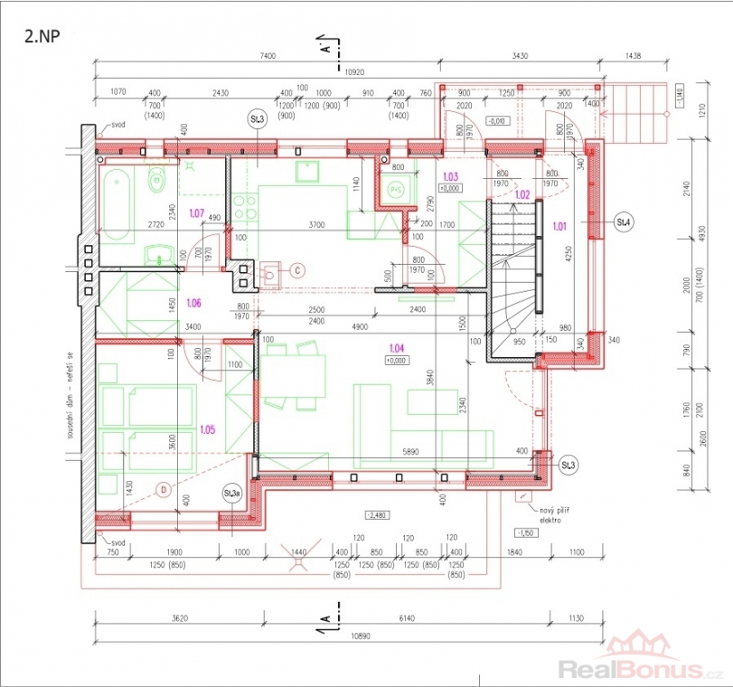 -samostatnou jednotku 2+1 o velikosti cca 62 m2 v 3. NP,