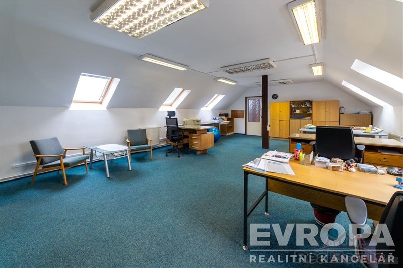 Kanceláře + recepce: 193,1 m (5 kanceláří v patře nad sklady, 2 z nich jsou klimatizované)