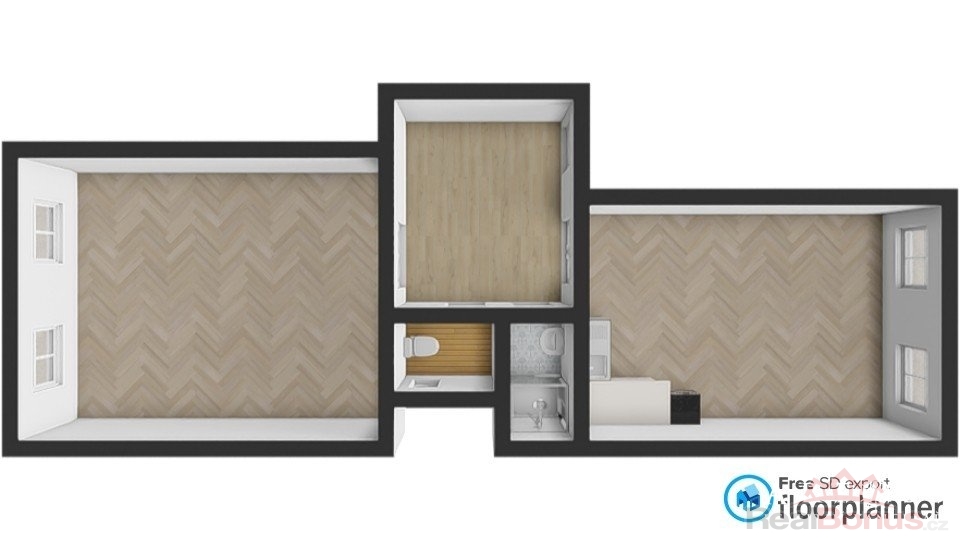 Kuchyň bude vybavena jednoduchou kuchyňskou linkou s volně stojícím sporákem. Jinak bude nezařízený - bez nábytku a vybavení.