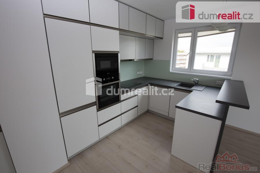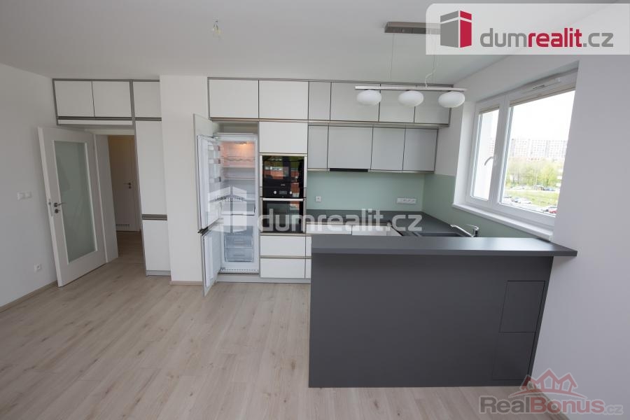 +popl. 7500, 2x garáž (á 600 Kč měs.) , Dumrealit.cz Vám zprostředkuje pronájem slunného bytu 4+kk 94 m P4 Háje, Jurkovičova, s balkónem 10 m, 2x WC, 2x garážové stání v suterénu domu + sklepní kóje. Byt se nachází v klidné ulici tvořící součást residenčního komplexu Milíčovský Háj oceněného pro svůj vysoký standard a pasivní energetický charakter, ve 4.patře moderního bytového domu (SKANSKA). Ze vstupního prostoru chodbybohatě vybavené vestavěnými skříněmi (vč. botníku a věšáků) lze vstoupit do samostatné šatny, ostatních neprůchozích pokojů a do místností sociálního zázemí. V obývacím pokoji je plně vybavená kuchyňská linka ve tvaru U s kamenným dřezem (corian), barovým pultem, indukční varnou deskou, el. troubou, myčkou, digestoří a vestavěnou lednicí s mrazákem. Z obývacího pokoje je vstup na balkon o velikosti 10 m. Některé pokoje mají zabudované vestavěné skříně, součástí ložnice je místnost se samostatným WC. V pokojích a chodbě je položena světlá plovoucí podlaha, v šatně a soc. zázemí pak keramická dlažba. Druhé samostatné WC a koupelna s vanou a sprchovým koutem (vč. místa pro umístění automatické pračky) jsou přístupné z centrální chodby. Součástí bytu jsou 2 garážová stání v suterénu domu a sklepní kóje. Vstupní dveře do bytu jsou v bezpečnostním provedení NEXT, vstup do domu na el. čip. V bytu je rozvod TV, teplá voda a topení (radiátory s termohlavicemi) je dálkové. Byt se nachází v lokalitě v těsném sousedství Milíčovského lesa s množstvím pěších tras vhodných pro turistiku nebo jízdu na kole. V okolí jsou udržované parkové plochy s množstvím zeleně. V docházkové vzdálenosti se nachází mateřské a základní školy, obchody a veškerá občanská vybavenost. Lokalita má vynikající dopravní dostupnost 5 min metro Háje, 1 min zastávka BUS, 7 min. autem na D1. K nastěhování ihned, doporučuji. Ev. číslo: 653198. Energetický štítek: C (101 kWh/m2/rok).