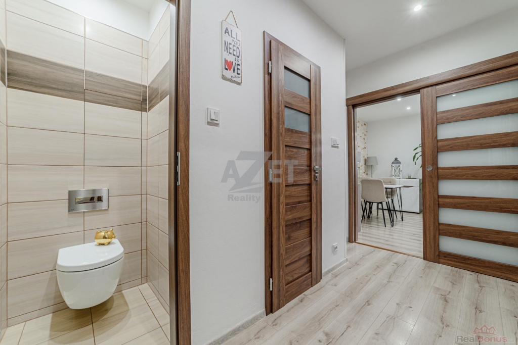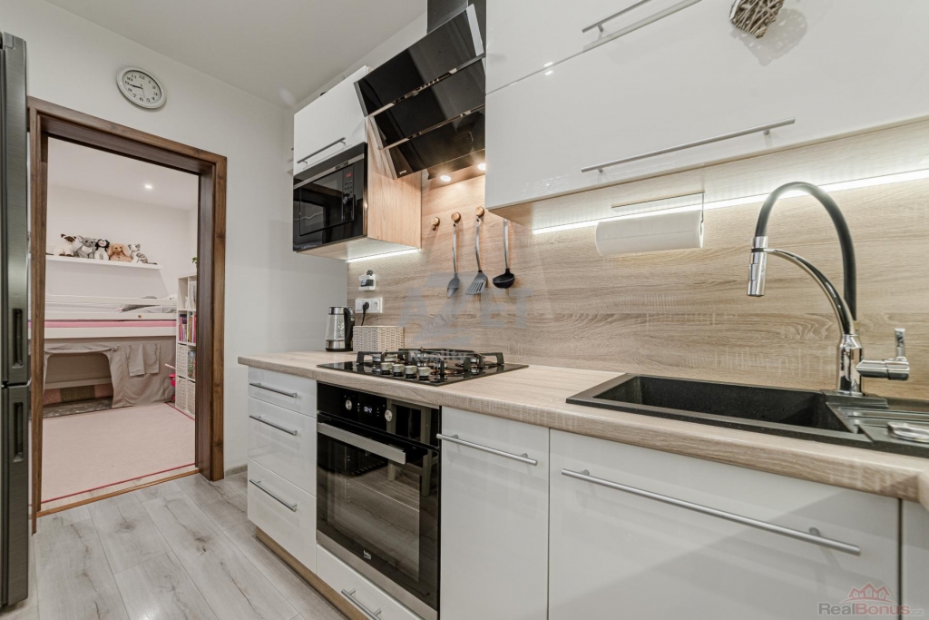 - Rekonstrukce bytu byla provedena od podlahy po strop a promyšlena do posledních detailů. Neboť rekonstrukce byla provedena dle přání majitelů a ne na velkej kšeft na úkor kvality jak lze bohužel velmi často vidět u realitních překupníků s hyperluxusní a nákladnou rekonstrukcí za pár kaček (čest výjimkám). V tomto bytě Vám nezůstane klika od dveří v ruce a zásuvky budou fungovat tak jak mají.