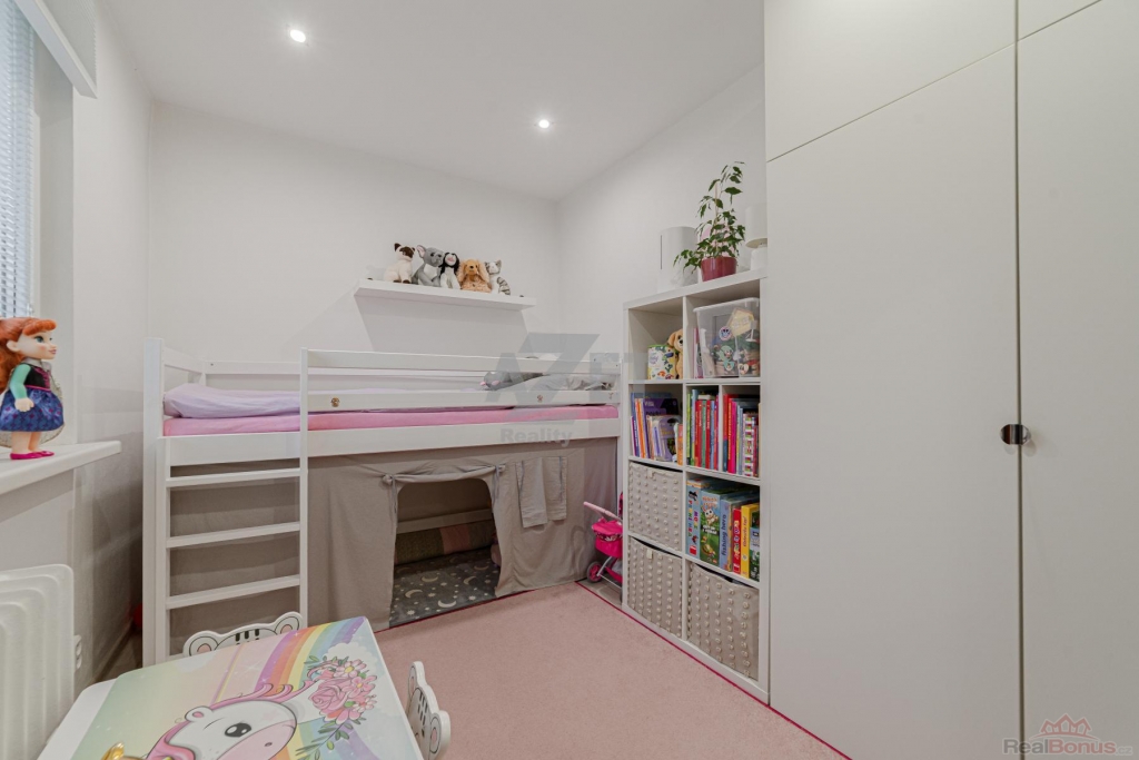 Umístění bytu je v 3. patře bytového domu (4. nadzemní podlaží). Byt nabízí neprůchozí místnosti kromě obývacího pokoje. Vstup do bytu je zajištěn bezpečnostními dveřmi. V chodbě bude ponechána vestavěná skříň v níž nalezneme jedny z prvních z vychytávek - zásuvku pro nabíjení ručního vysavače a posuvné dveře do obývacího pokoje a dětského pokoje zajišťující tak úsporu místa. WC je samostatné a koupelna díky promyšlenému uspořádání umožňuje umísit nejen pračku, ale také sušičku (skříňka nad pračkou se jen přesune). Kuchyně jenž byla provedena na míru majitelům poskytuje maximální praktičnost. Varná deska nyní plynová lze zaměnit za indukční , vše je na tuto změnu připraveno. Budou ponechány samozřejmě spotřebiče včetně lednice. Dětský menší přesto dostačující a bude při předání vyklizen. Obývací pokoj je svým umístěním středobodem celého bytu a najdeme v něm i jídelní část pro celou rodinu. Bude ponechán včetně vybavení vyjma TV. Ložnice, prostorná pro standardní manželkou postel a šatní skříň. Vybavení ložnice může být ponecháno po domluvě s majiteli. Z ložnice je vstup na prostorný, zasklený balkón. Na balkóně opět najdeme vychytávky v podobě stínících rolet, uzamykatelného zasklení a zásuvky pro vánoční světýlka či elektrický gril. Ložnici lze samozřejmě prohodit s nynějším dětským pokojem a dopřát dětem více prostoru.