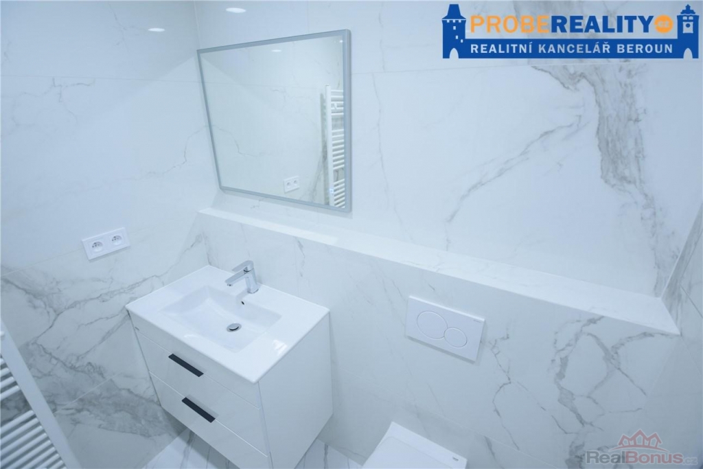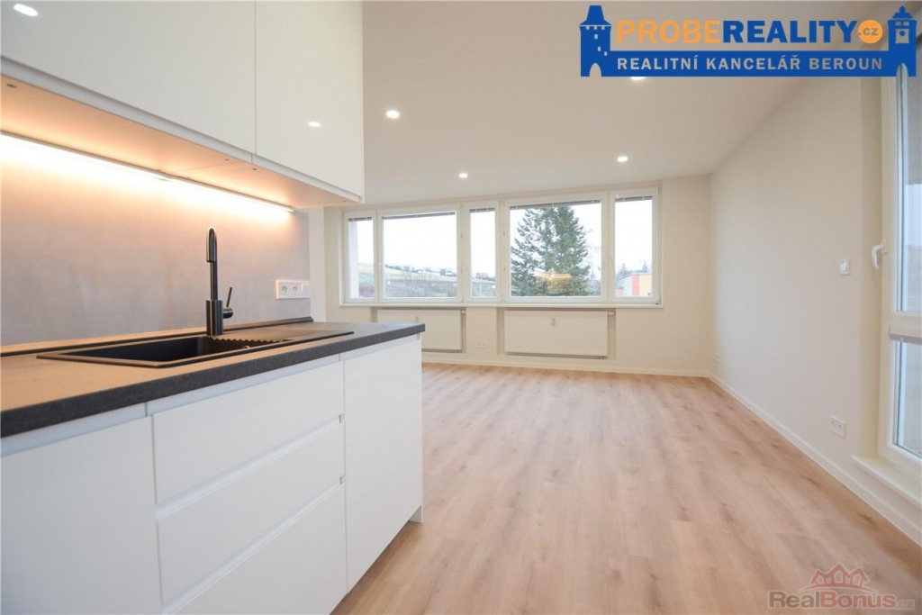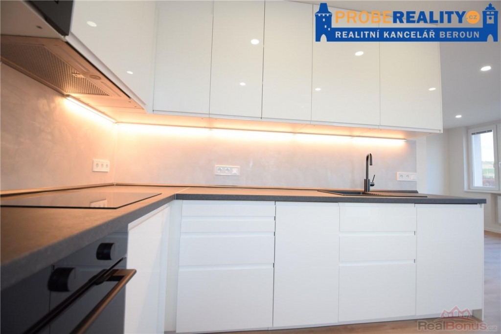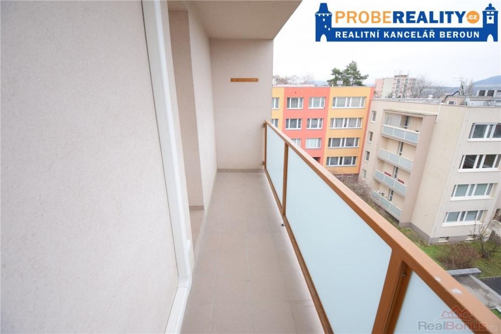 Nabízíme k prodeji dispozičně dobře řešený a slunný byt, 2+kk, 57 m2 / L, který se nachází v 4p/4p, revitalizovaného panelového domu ul. pod Homolkou Beroun. Celý byt prošel kompletní a zdařilou rekonstrukcí. Důraz byl kladen na vysoký standart všech prací a zařizovacích předmětů. Byt tak působí světlým a prostorným dojmem. Ve všech místnostech nalezneme snížené stropy s integrovanými svítidly. Kuchyňská linka je na míru s veškerými vestavěnými spotřebiči (lednice, mrazák, sporák, myčka, pračka mikrovlnná trouba, -vše je nové a ještě v záruce). Z kuchyně je také volný vstup na prostornou lodžii, která je orientovaná do klidného vnitrobloku a na které nalezneme klimatizační jednotku určenou pro tento byt. Koupelna je vybavena sprchovým koutem. Jako podlahová krytina bylo použito kvalitní PVC a dlažba. Okna bytu jsou orientována na V/J, což zaručuje vysokou slunnost bytu. Velice klidná a žádaná lokalita s dostatkem soukromí a zeleně. Kompletní občanská vybavenost v místě. Výborná dostupnost na dálnici D5 směr Praha.