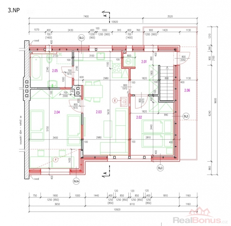 -samostatnou jednotku 2+1 o velikosti cca 62 m2 v 3. NP,