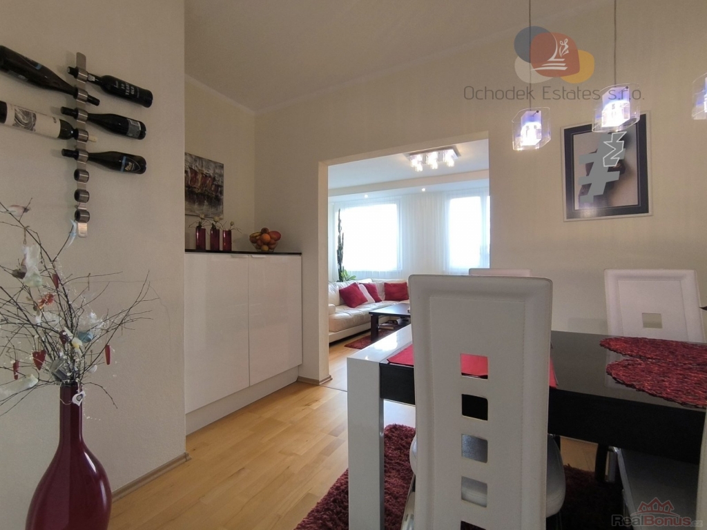 Družstevní byt o dispozici 4+1 a výměře 78 m2 se nachází ve třetím patře panelového domu, který prošel kompletní revitalizací. Stejně tak i byt jako takový má za sebou kompletní rekonstrukci, tudíž nebudou potřeba Vaše další zásahy a je připraven k okamžitému nastěhování.